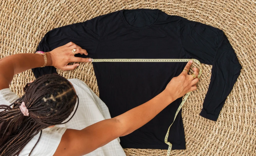 Mesurez en ligne droite sous les manches, d’un côté à l’autre de la chemise.