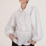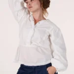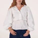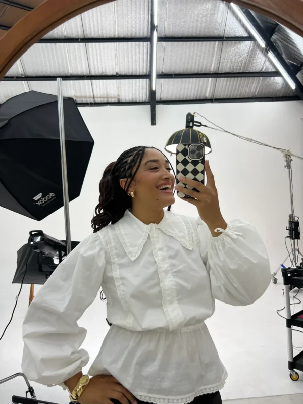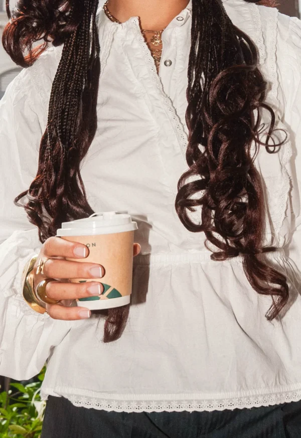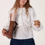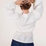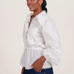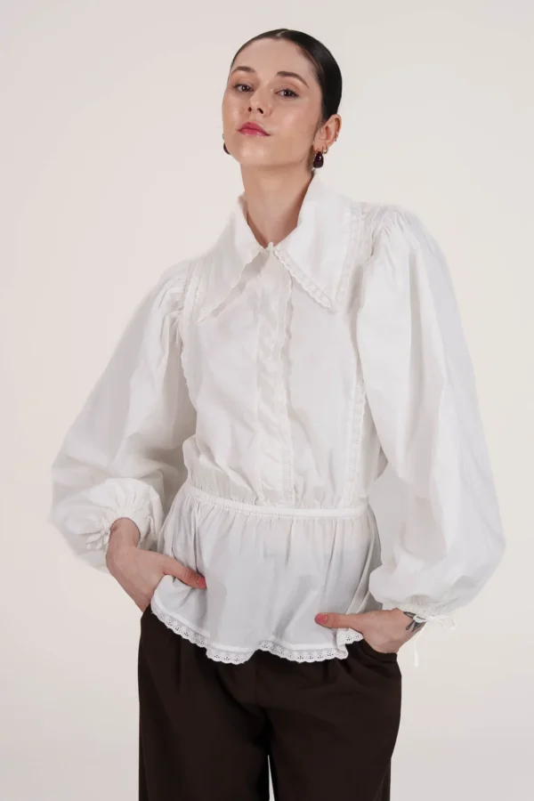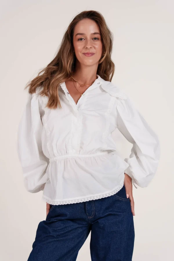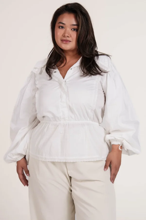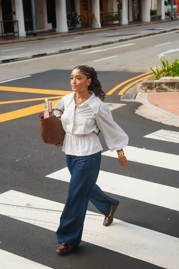 On a créé le chemisier de nos rêves (& des vôtres). Un tissu 100% coton biologique certifié GOTS, pensé durabilité pour s’assurer que vous puissiez la reporter dans 10 ans. Des manches bouffantes, de la broderie et une ceinture dissimulée de quoi le resserrer à la taille.